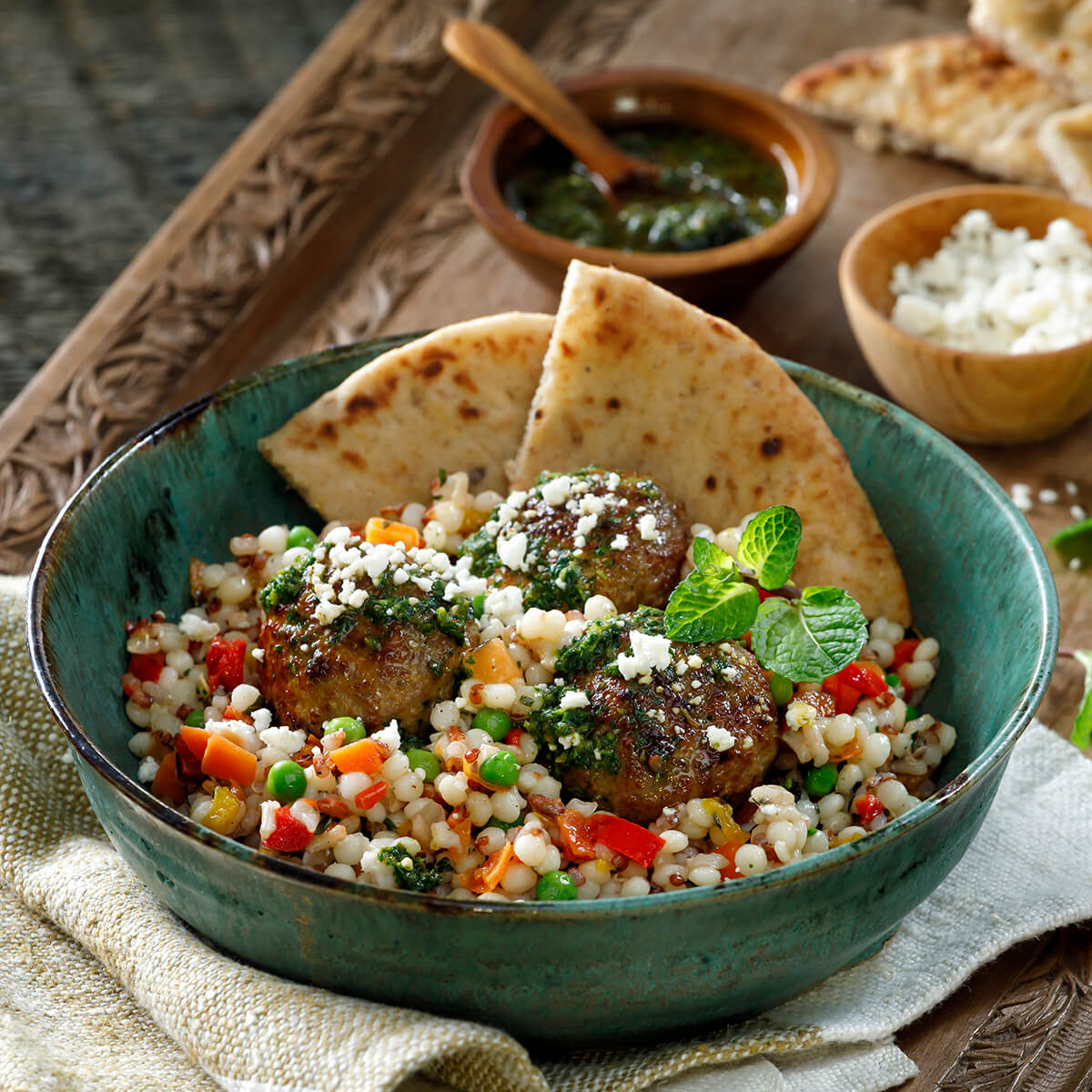 Meatballs aren't a traditional dish of morocco, but the herbs and spices in these lamb meatballs give them a strong north african accent. This month's valentine's day themed recipe is perfect for a grown up meal for two. 3/4 cup pearl couscous, cooked. 1 1/2 teaspoons dried oregano. It's so versatile and can be used in so many ways from roasts to lamb chops, burgers, meatballs of course kebabs, too!